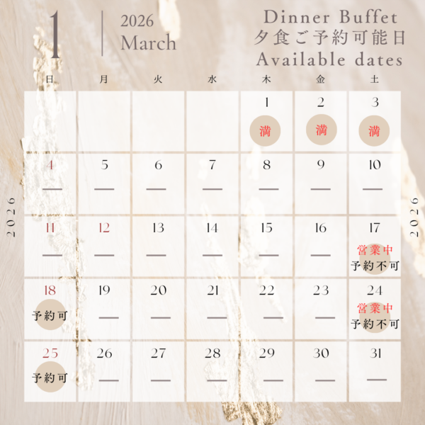 ※宿泊のお客様数により閉店時間は変更する可能性がございます。一度ご連絡下さい。 The closing time is subject to change depending on the number of guests. Please contact us once. ※連休や夏休み期間中、年末やゴールデンウイークなど、ご宿泊のお客様でホテルが満室または満室に近い日は、日帰りのご利用をお断りすることがございます。