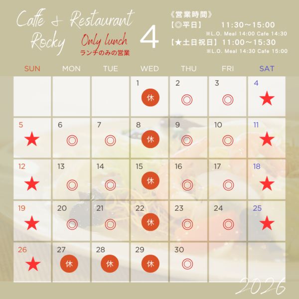 3月ロッキー営業日 水曜日定休 夜ロッキーは不定休